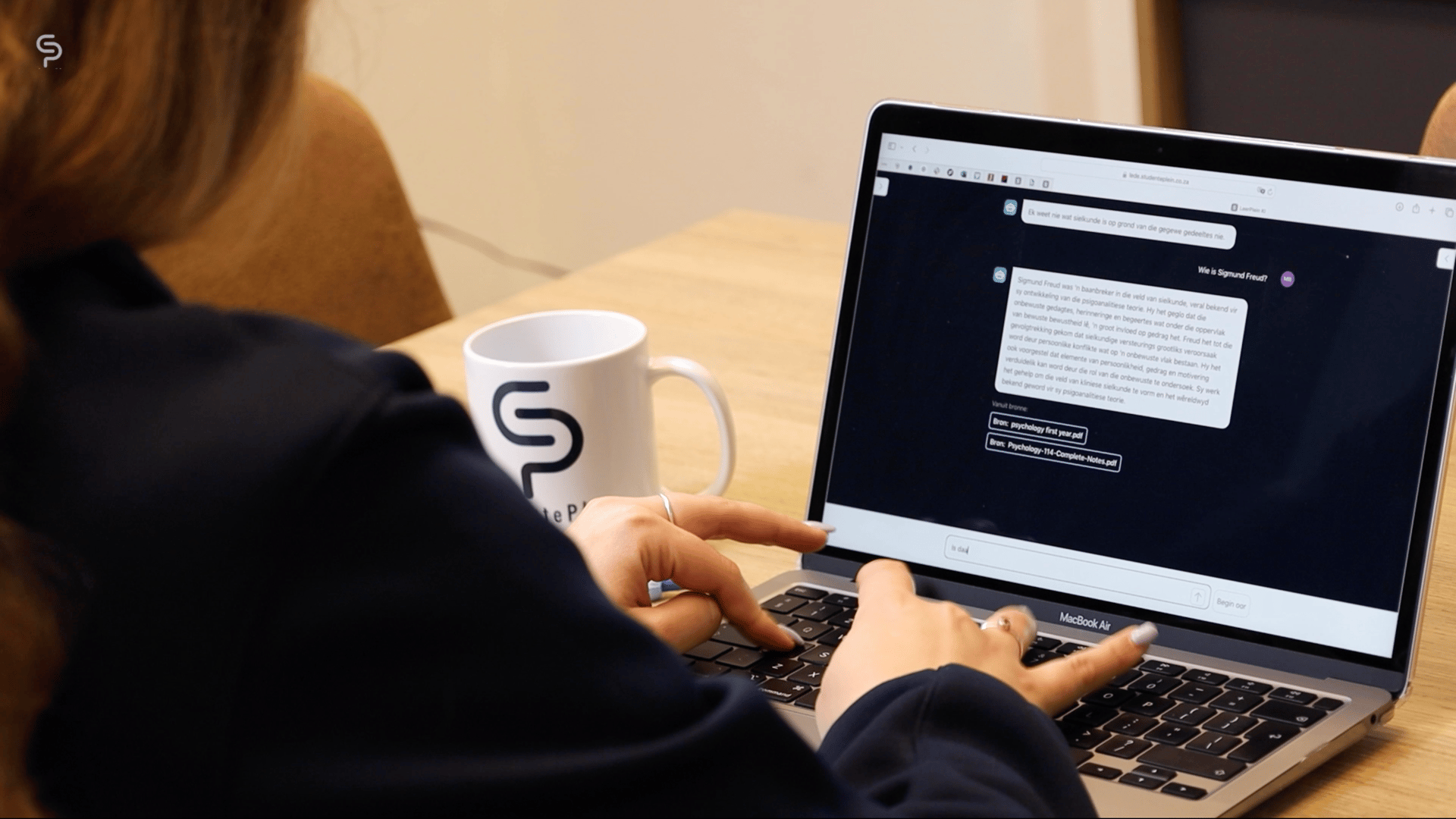 Die platform is ontwerp vir gebruikers regoor verskeie fakulteite – van Geneeskunde tot Regsgeleerdheid, waar Afrikaanse materiaal al vir jare afwesig is. ’n Student kan eenvoudig ’n module kies, byvoorbeeld Strafreg Praktyk, en dan in Afrikaans vrae stel oor die inhoud. Die platform gee binne sekondes antwoorde terug, met verwysing na die oorspronklike Engelse bronmateriaal.